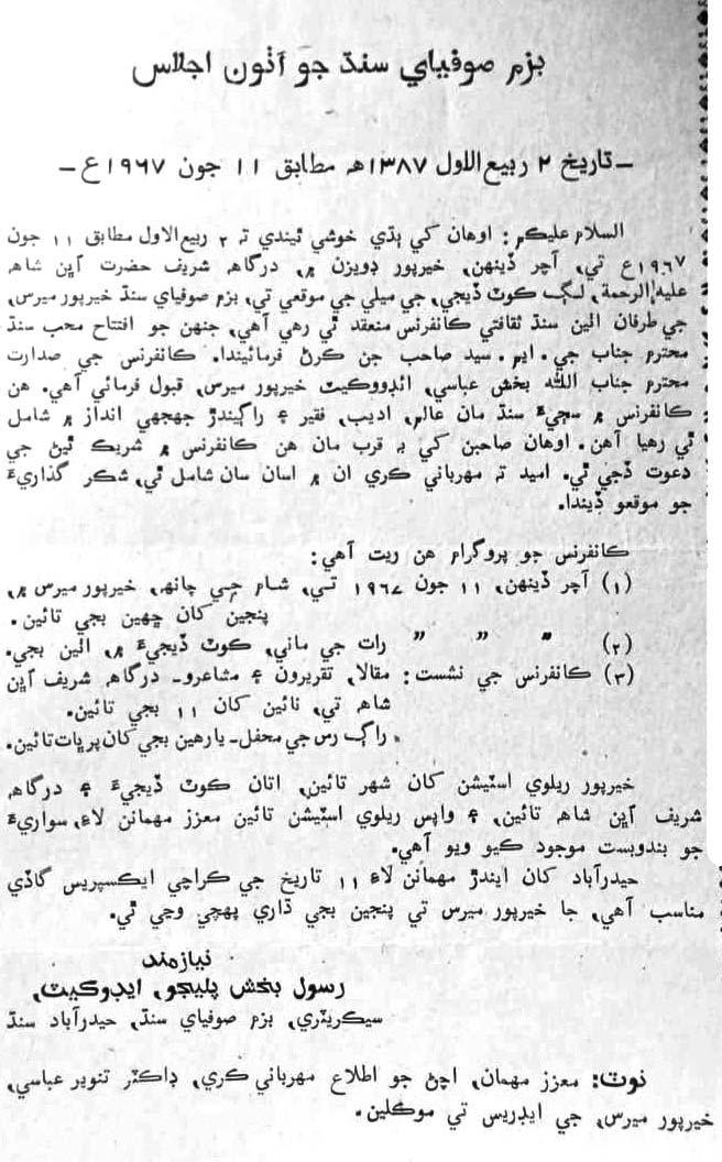 هونئن ته سيد صاحب پاران ’بزمِ صوفياءِ سنڌ‘ جي