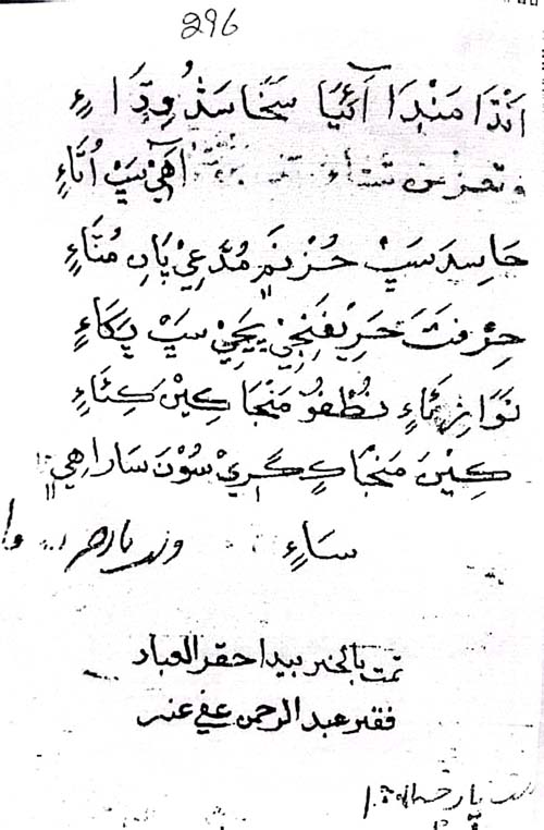 ضرور چئبو ته موجوده نسخي جو ڪاتب عبدالرحمان پاڻ