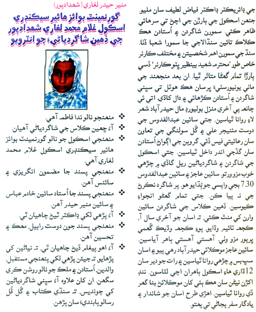 شاگردن ۽ پڙھندڙن کي گھرجي ته ھو پنھنجي لاءِ ۽