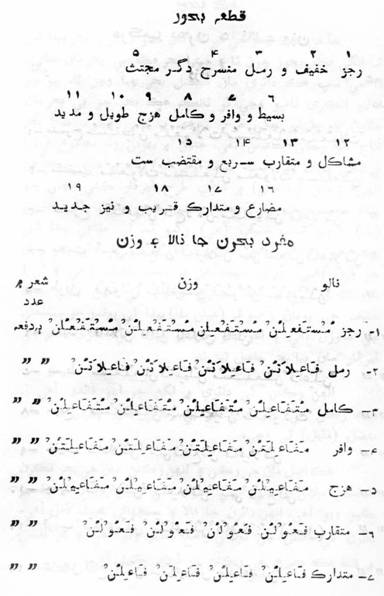 وافر (6)هزج (7) رمل (8) رجز (9) منسرح (10) مضارع