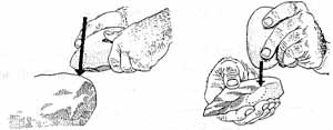 هڪ وڏو چقمقي پٿر کڻي ان کان ٻئي پٿري هٿوڙي جي ضرب سان ٻه اڌ