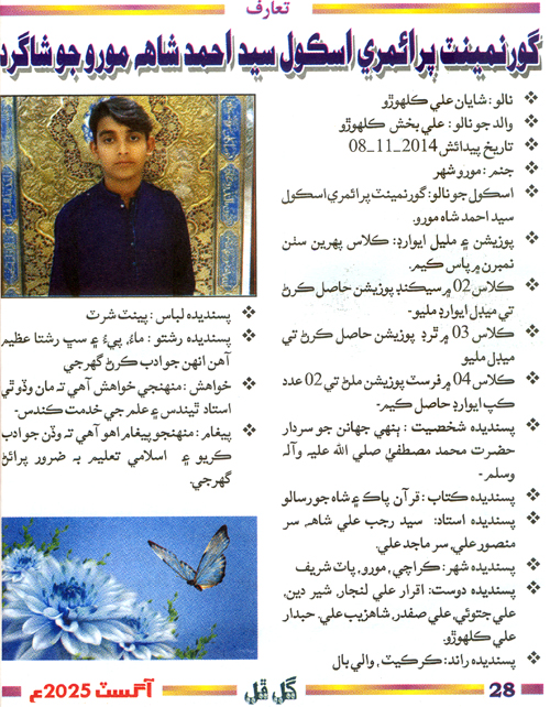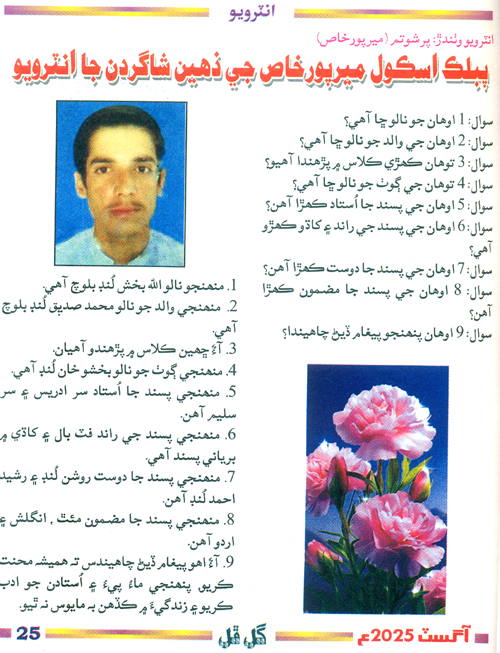 درجي ۾ پڙهندو هو. گلاب پنھنجي مٽن مائٽن ۽ وڏڙن