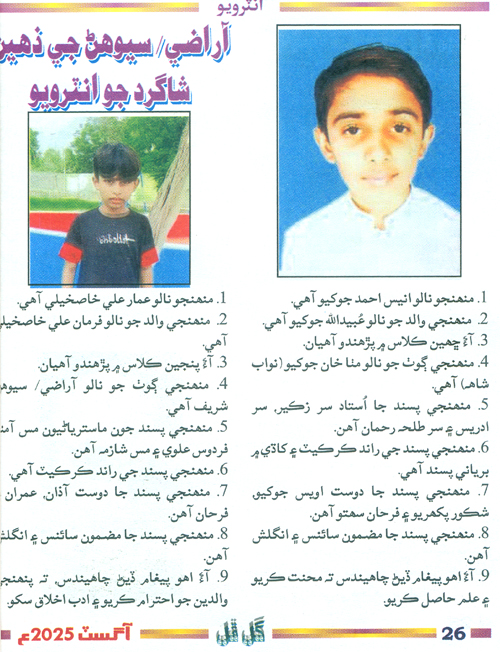 گلاب سڀني ٻارن جي منھن ۾ نھاريو ۽ پوءِ پنھنجي