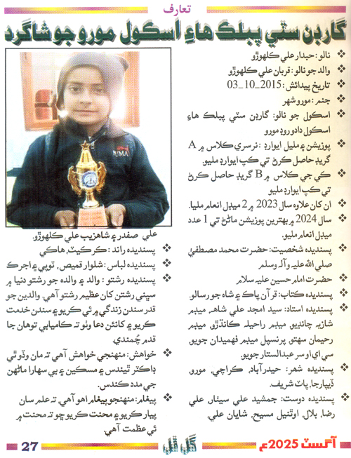 جي گھڻي عزت ڪندو ھو ۽ ننڍڙن ٻارڙن سان بي پناھ