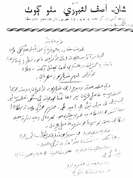 آصف صاحب، اهڙي کٽڪي جو اظهار، مون ڏانهن موڪليل